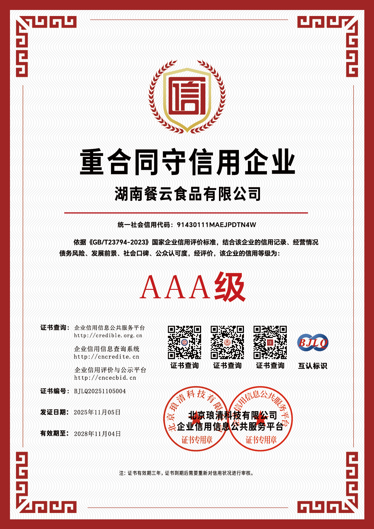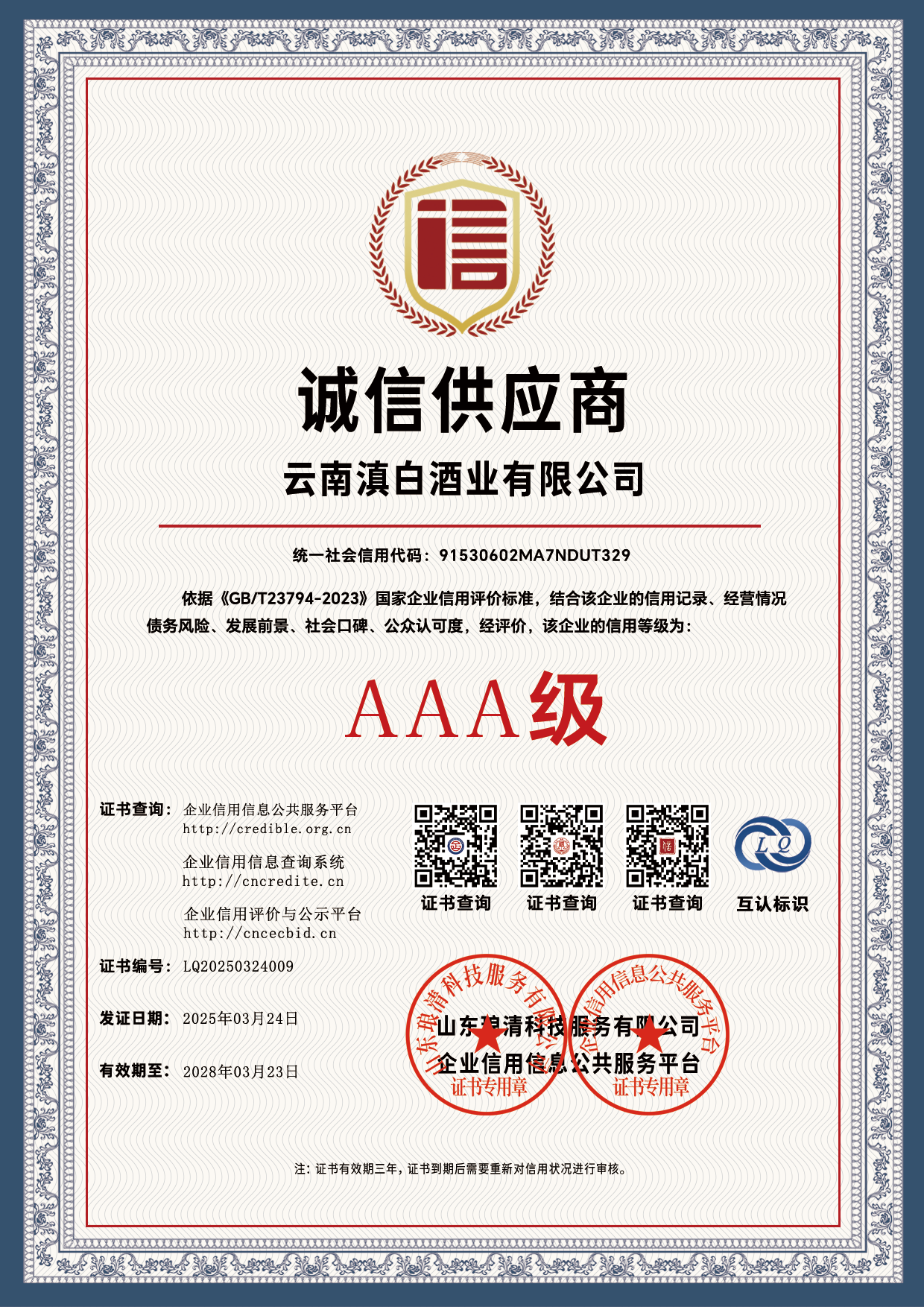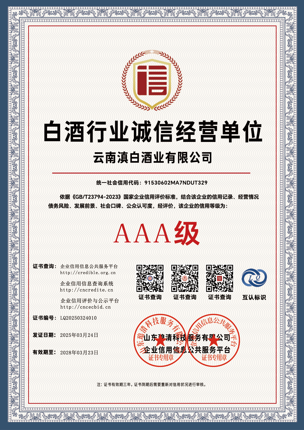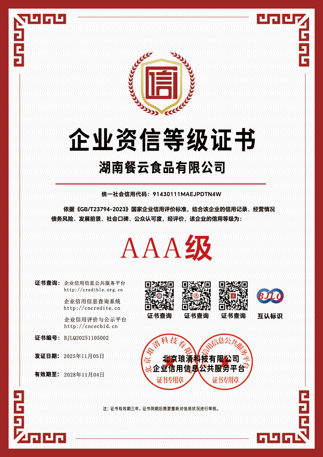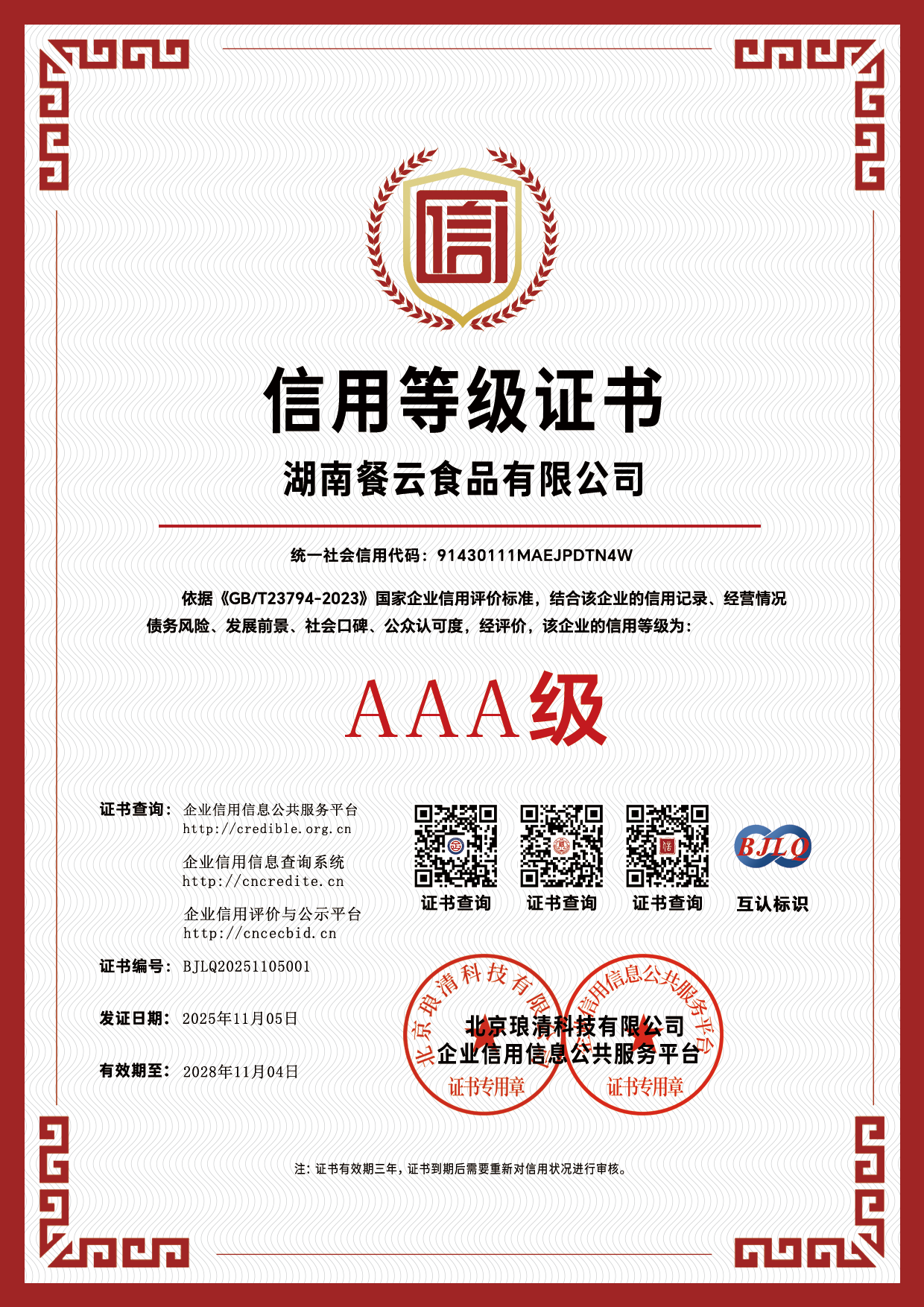 信用等级证书