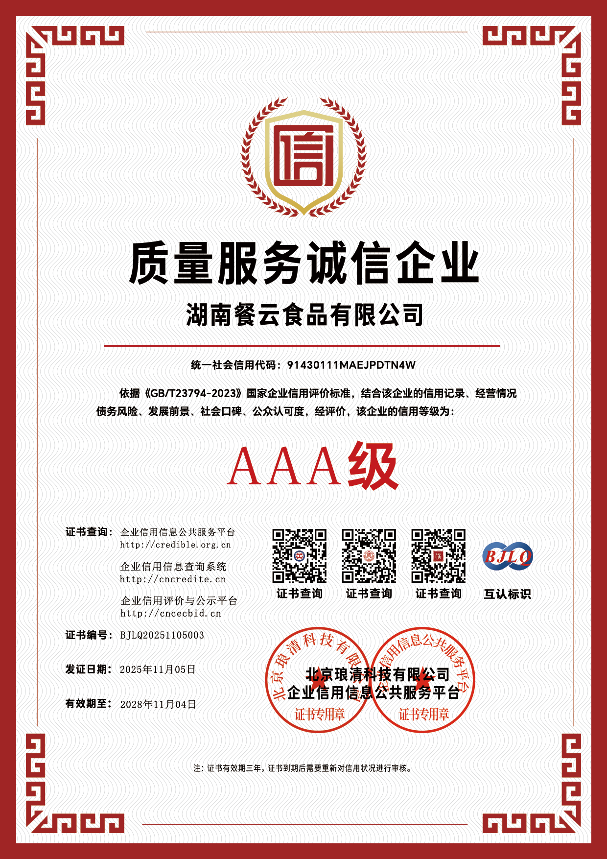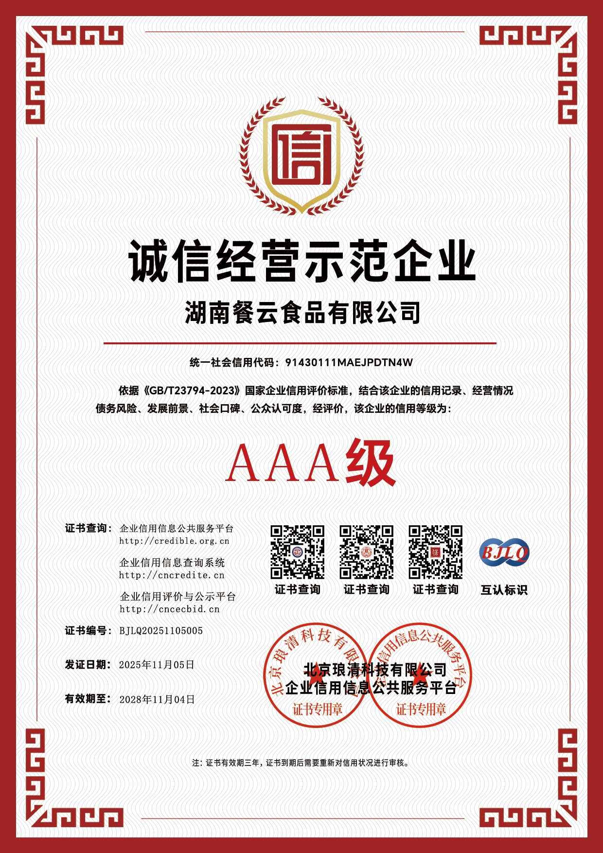 AAA信用公示